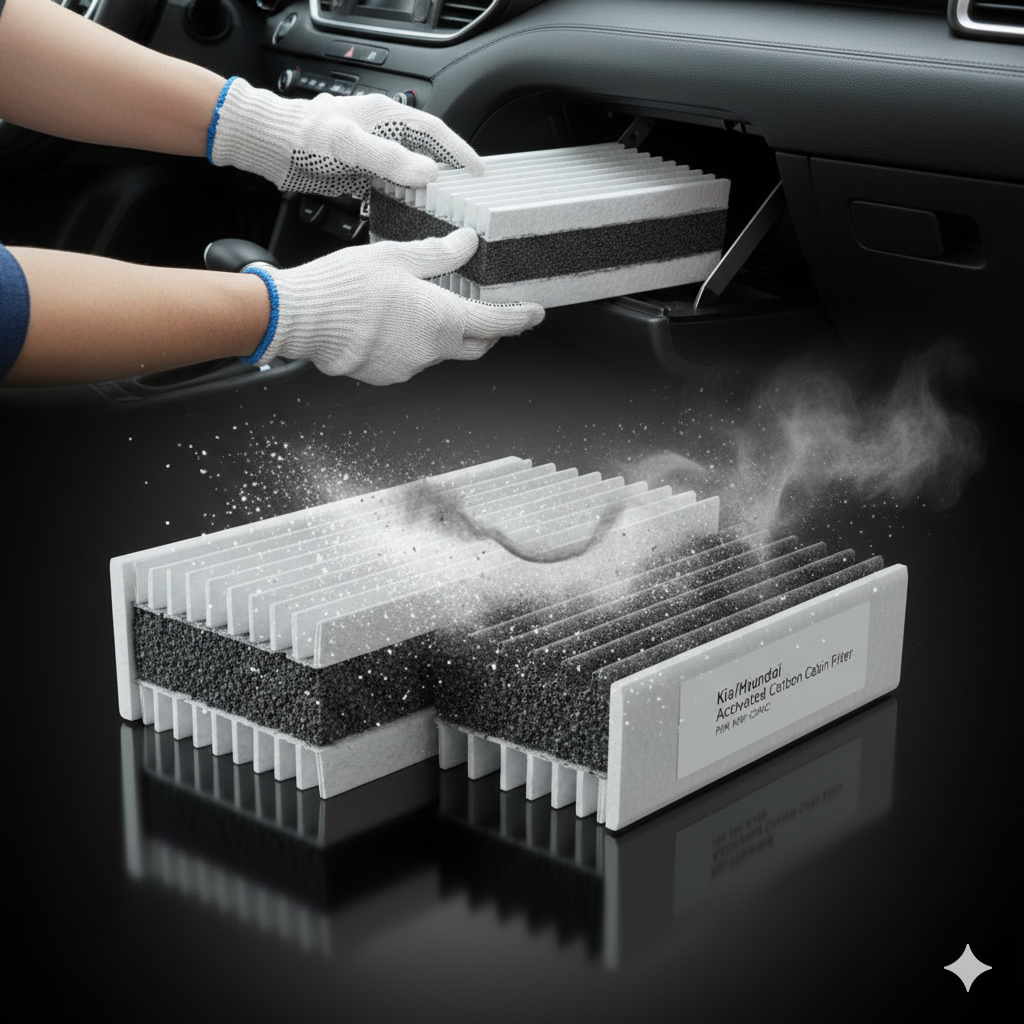This Premium Activated Carbon Cabin Filter is specifically engineered to provide superior air quality for Kia and Hyundai drivers. Unlike standard filters, it features an advanced layer of activated carbon that effectively neutralizes unpleasant odors, exhaust fumes, and harmful gases, ensuring a fresh-smelling interior. Its high-efficiency filtration media traps microscopic dust, pollen, and allergens, providing essential respiratory protection for all passengers. Designed for a precise OEM fit, it restores maximum airflow to your vehicle’s HVAC system, preventing debris buildup and ensuring your heating and cooling operate at peak performance throughout the year.
